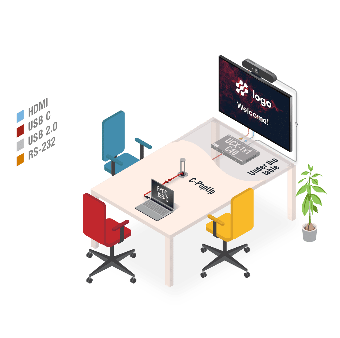 Le produit utilise la connectivité USB-C pour simplifier la transmission de la vidéo 4K, de l’audio, et signal de contrôle et de l’alimentation. Il permet un transfert des données allant jusqu’à 5Gbps dans le cadre de la norme USB 3.1 Gen1. Il prend aussi en charge une résolution vidéo allant jusqu’à 4K@60Hz at 4:4:4. Les utilisateurs qui connectent leurs ordinateurs portables ou autres appareils mobiles par l’USB-C peuvent aussi bénéficier de la charge allant jusqu’à 100W (120W total). Il n’est donc plus nécessaire de chercher une prise secteur, pour recharger son ordinateur, ce qui évite aussi les interruptions soudaines pendant les réunions.